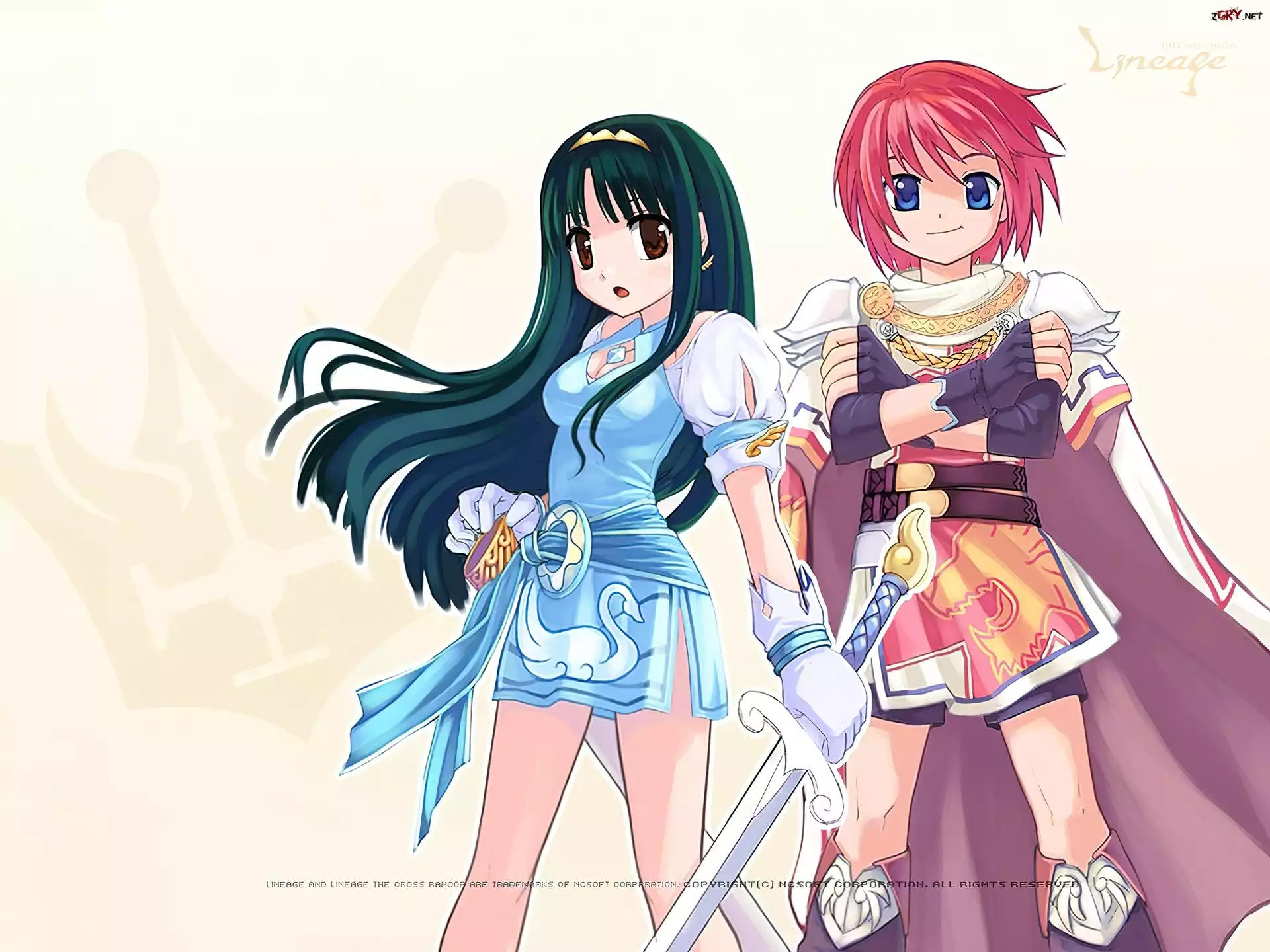 Lineage 2, postacie, kobieta, mężczyzna, miecz, wojownik