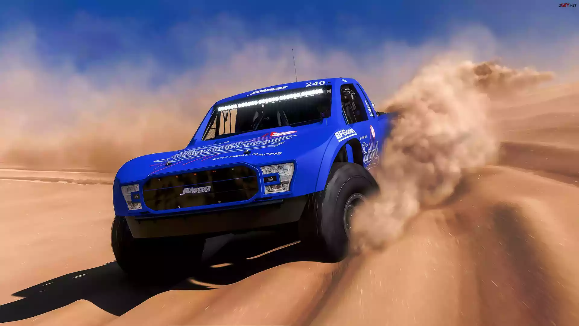 Gra, Forza Horizon 5 Rally Adventures, Samochód, Terenowy, Niebieski, Przód, Piasek, Pustynia, Rajd |