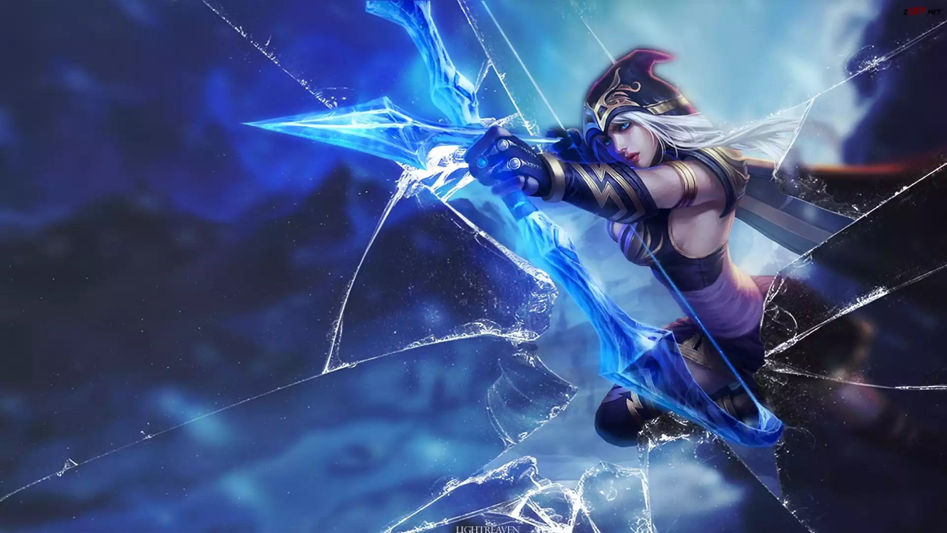 Ashe, League, Of, Legends, Pęknięty, Ekran
