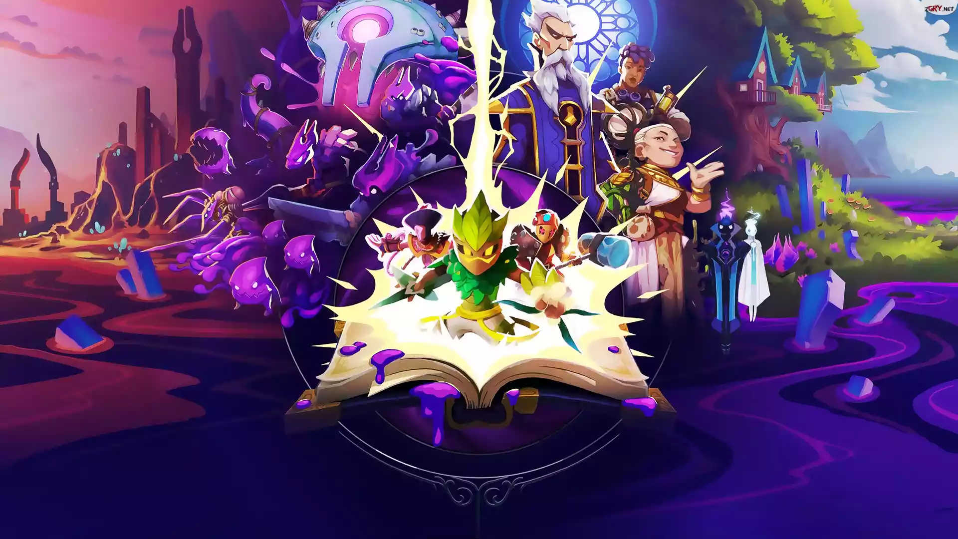 Gra, Inkbound, Postacie, Atrament, Kałuża, Krople, Książka, Domki, Drzewa, Plakat