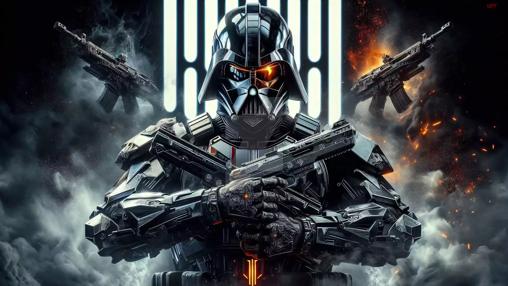Gra, Star Wars, Darth Vader, Postać, Karabiny, Dym, Ogień