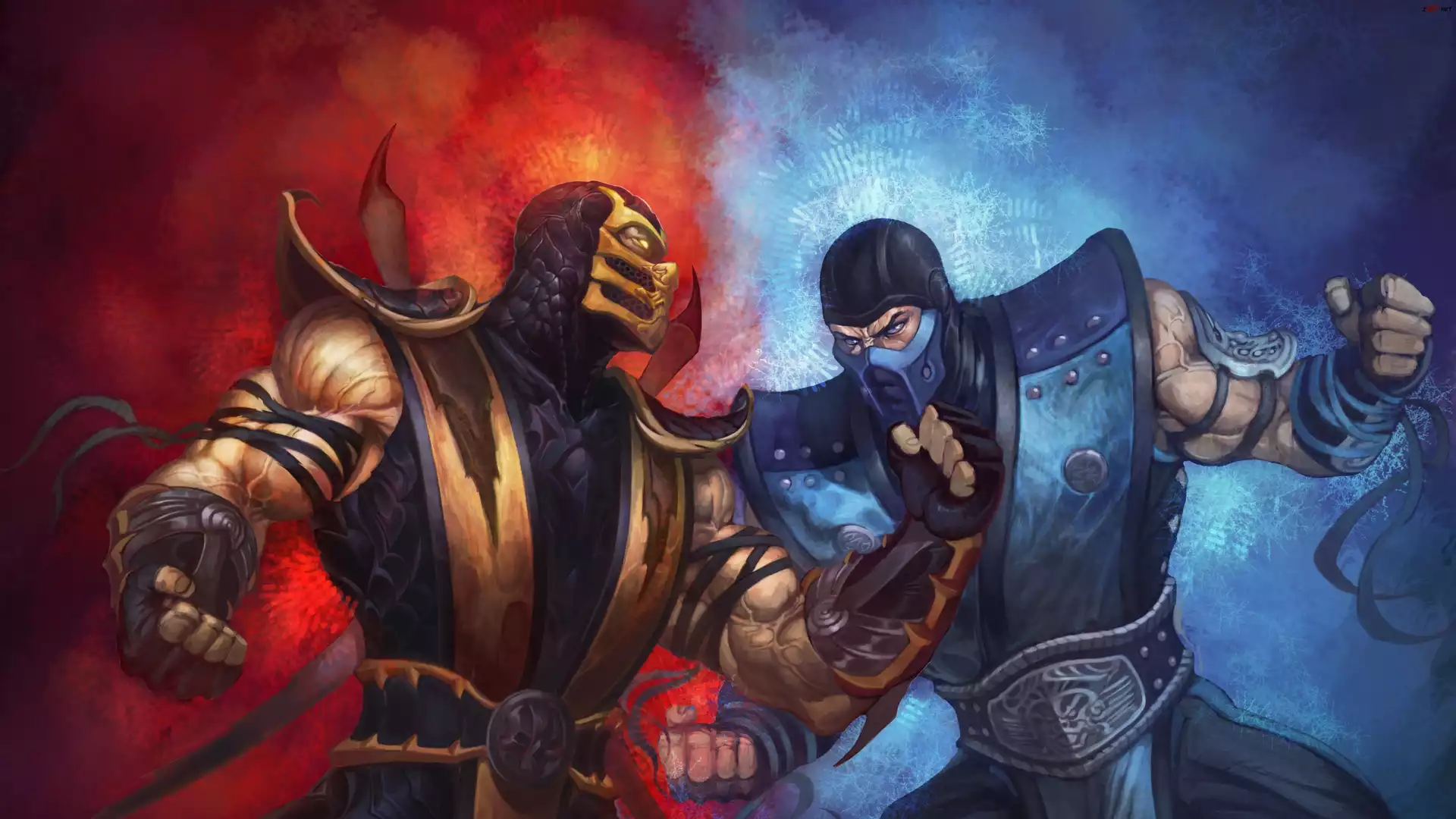 Mortal Kombat, Sub Zero, Scorpion, Lód, Ogień, Cios