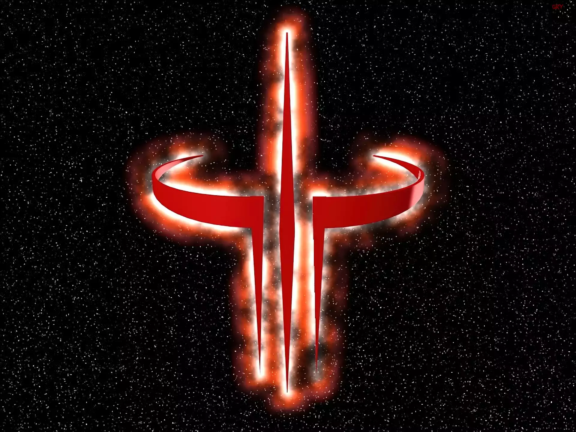 Quake 3, Live Quake 3, Płomienie Quake 3, Czerwone, Logo Quake 3, Światło Quake 3 Logo, Quake Logo, Quake 3, Arena Quake, Linux, Pingwin Quake 3