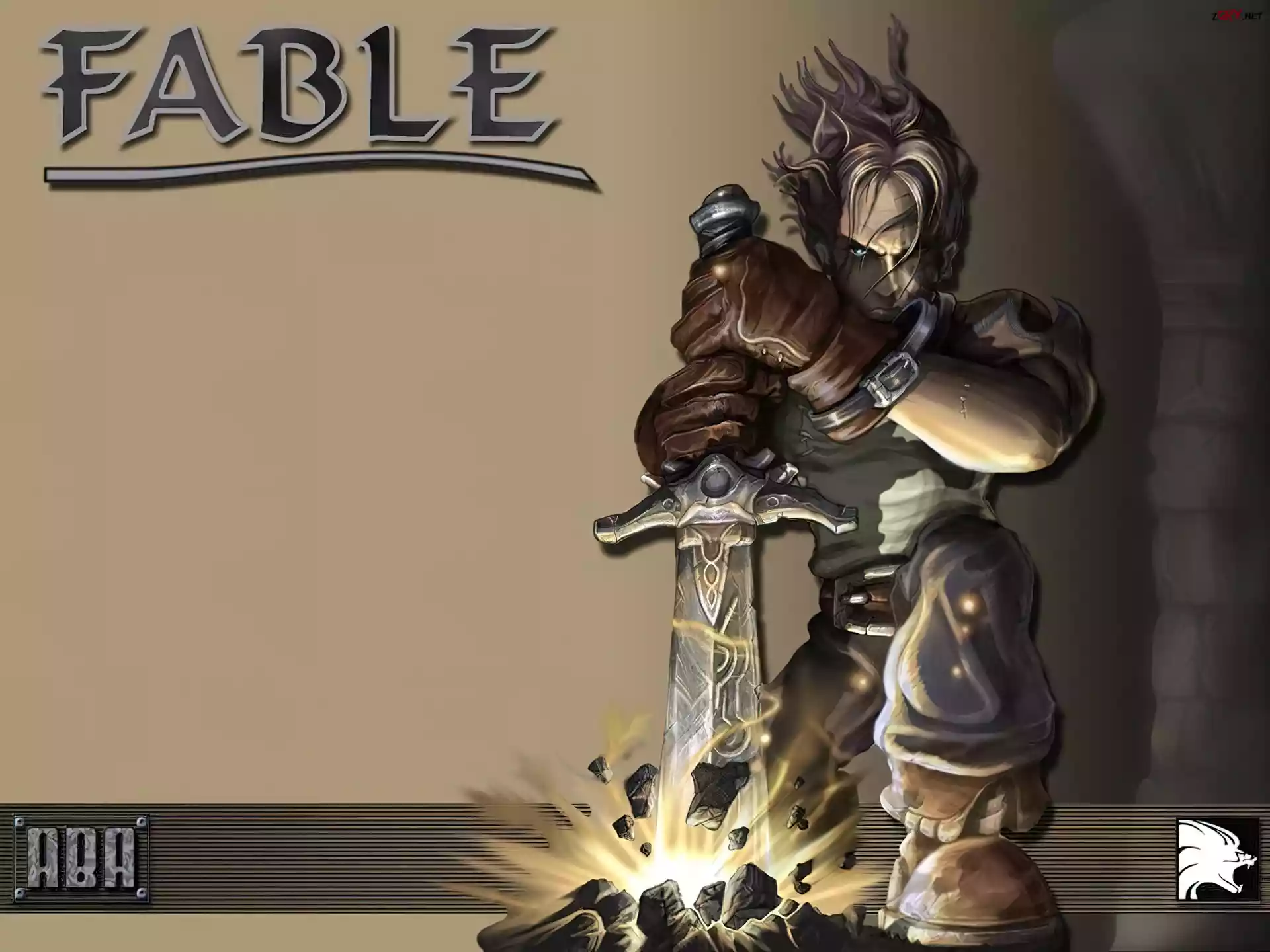 tunel, logo, obrazy, Fable Fable, sześcian, logo, obrazy miecz, mężczyzna, postać, Fable chłopiec, postać, wojownik, Fable