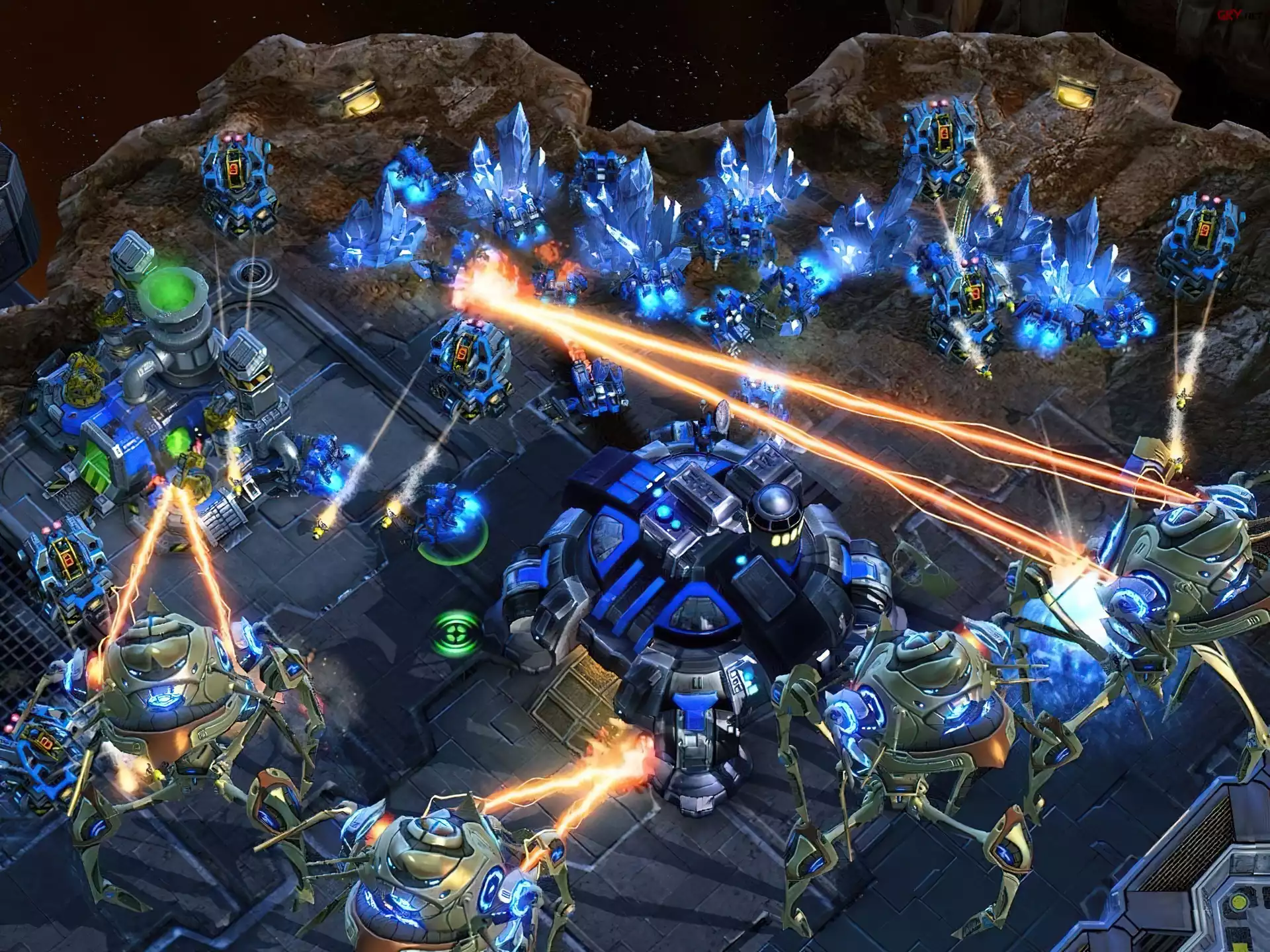 Screen, Starcraft 2, miasto, laser, kosmos, roboty