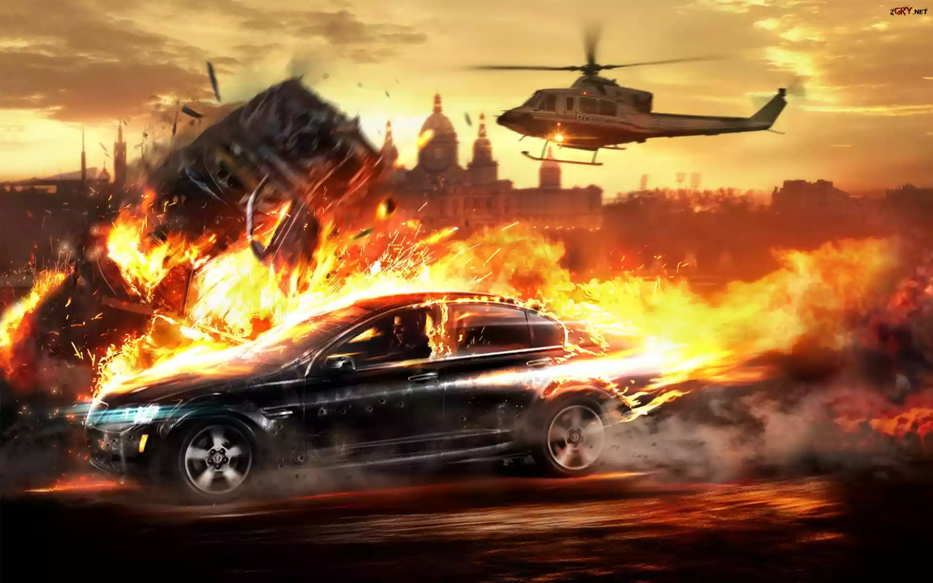 Screen, Wheelman, Helikopter, Samochód, Ogień