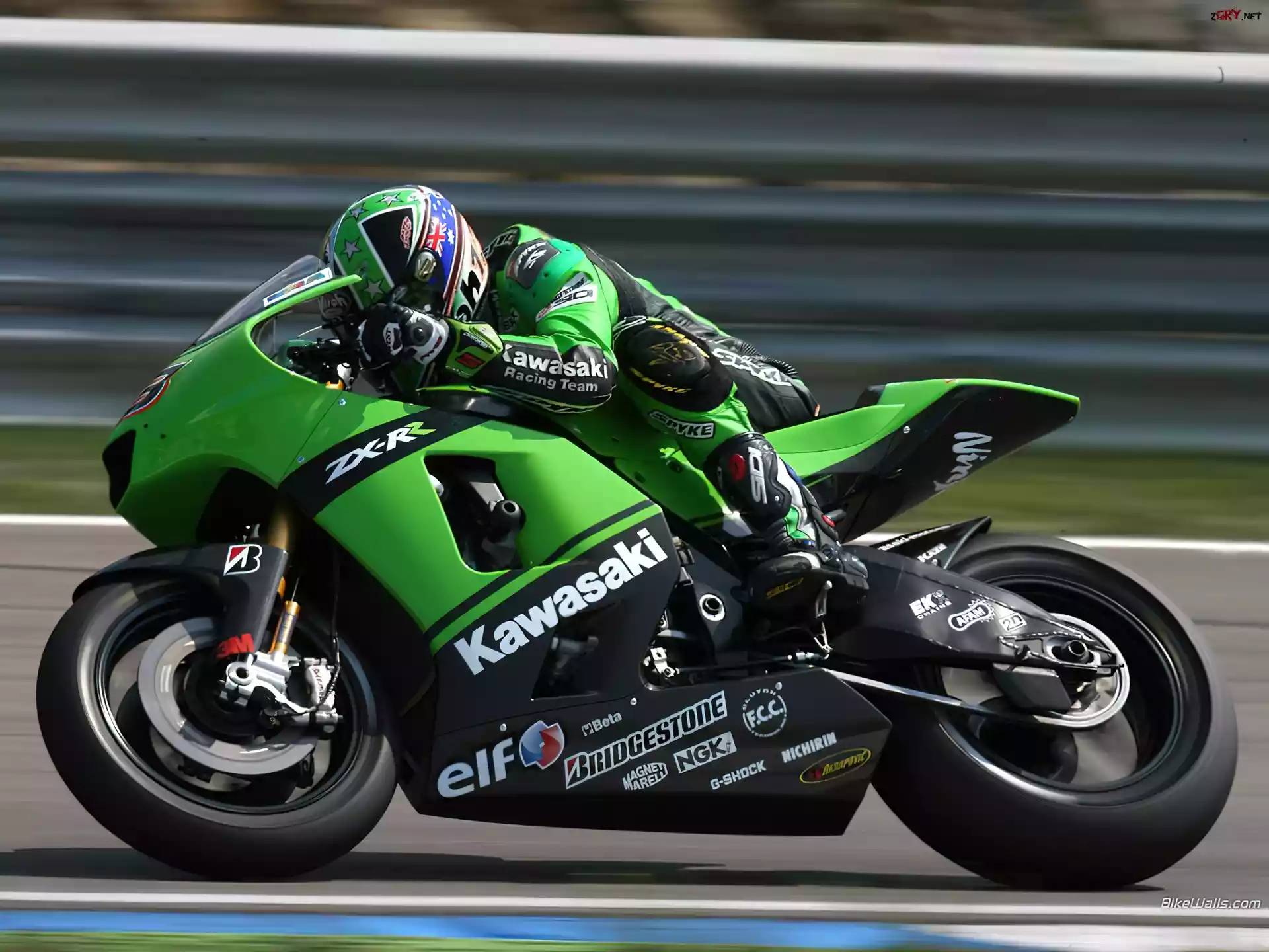 zielone, Kawasaki ZXR 750 Gra, MotoGP, Motocykl, Honda, Motocyklista Motory, Wyścig, Tor Gra, MotoGP, Motocykl, Motocyklista moto gp3, Wyścig